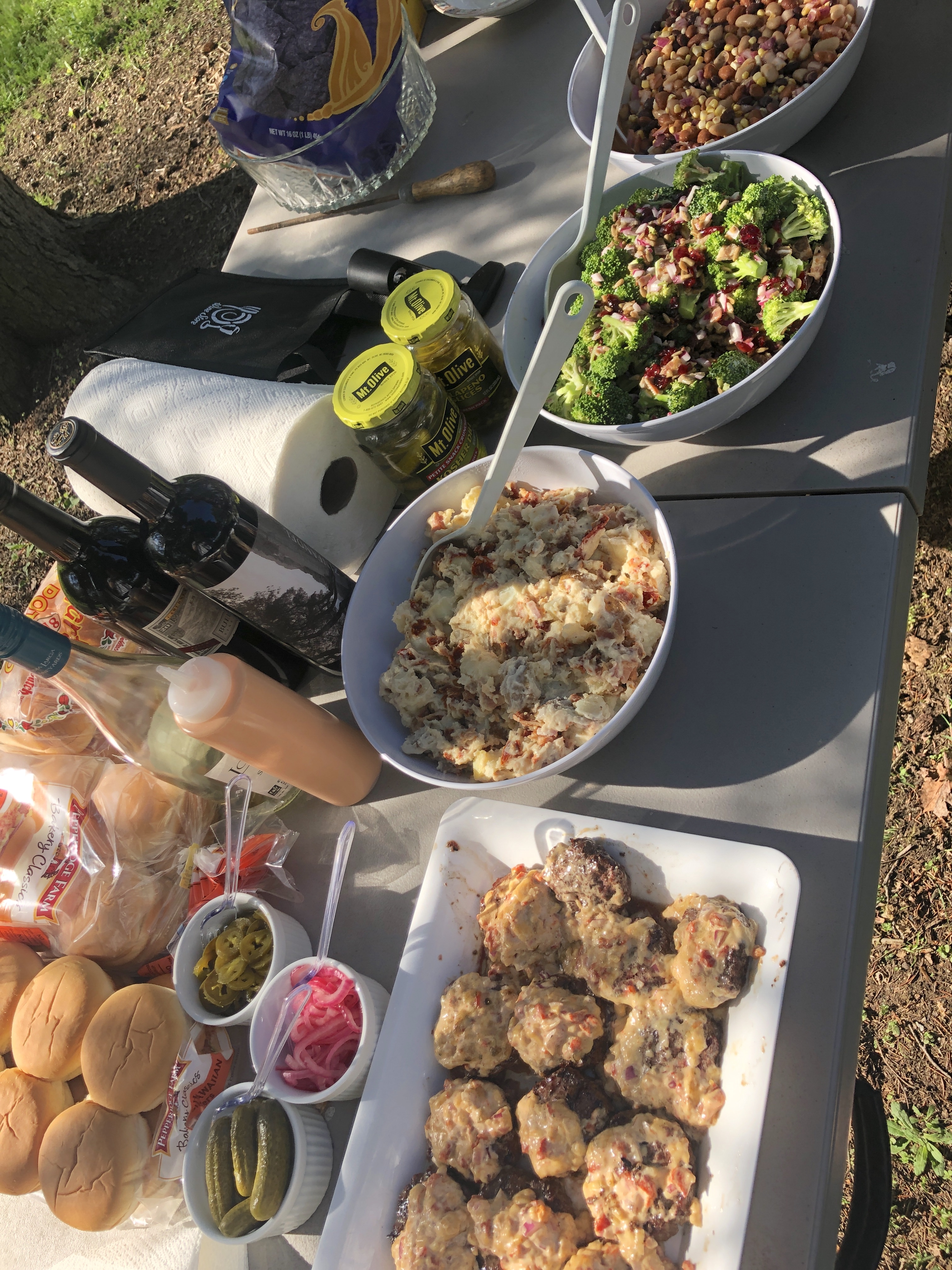 We wrapped up the whole visit with an obligatory Memorial Day cookout and bonfire. Being a foodie family we did not disappoint with our food choices… my dad made sliders in 3-varieties of meats (the Bison was my preference) and we had toppings galore! There is an quick-pickling recipe my husband found that we have been loving and used on some red onions that paired awesome with our jalapenos and Siracha mayo. We threw together a ton of sides and my standby coleslaw dressing recipe came in clutch.