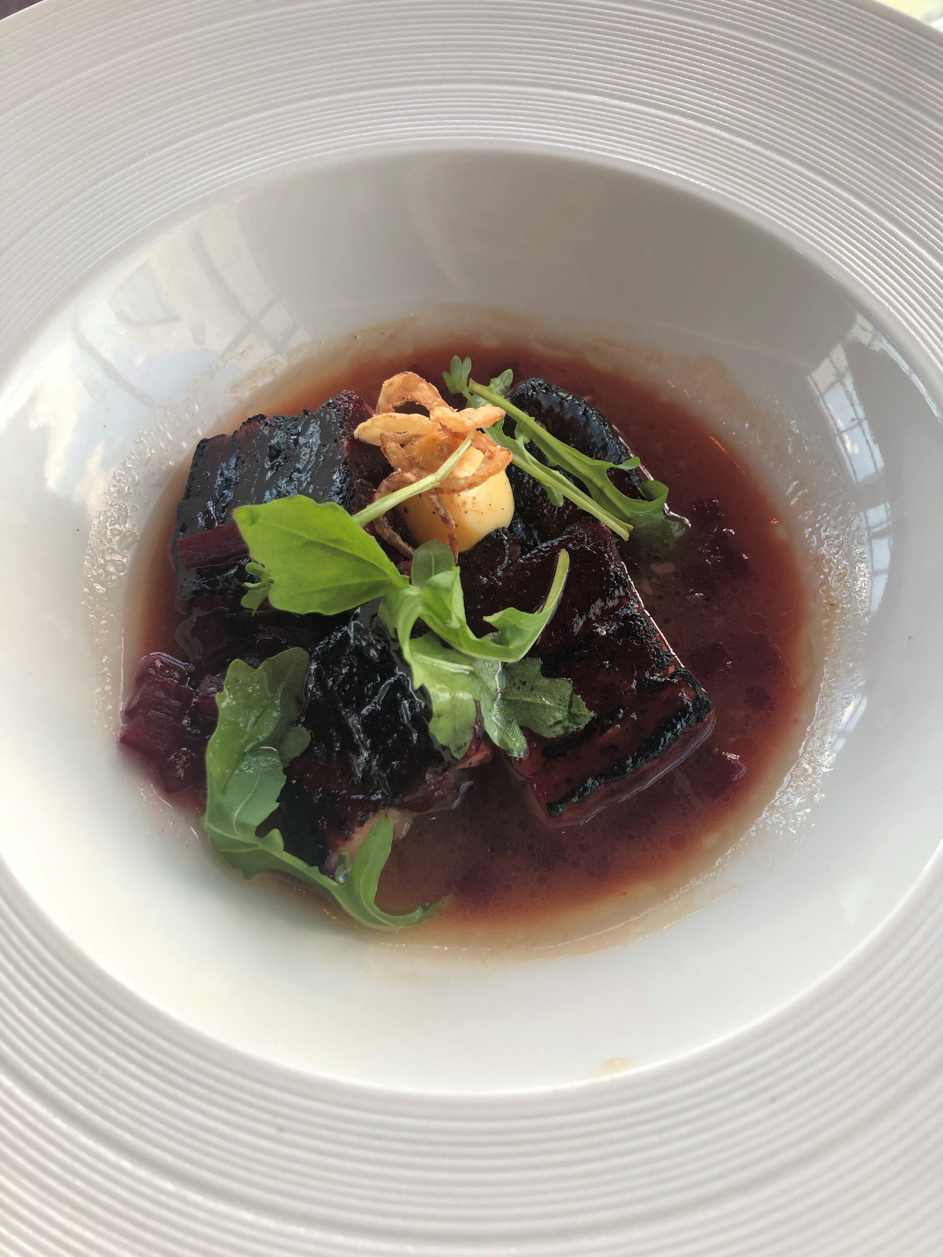 The Miso Chowder was fantastic. I thought the idea of a chowder with miso broth was actually fantastic for a light lunch. No heavy cream in sight here! The pork belly was also great – there was one dumpling in there with a bitter filling that threw me off a little, but I avoided them and stuck to the pork and broth and was in heaven. Also note, there is a rib eye option you can pay a little extra for if you want to do the true steak experience here.